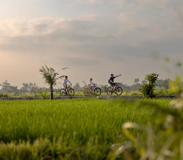 Cycling along peaceful green paths and neighbouring roads offers a refreshing way to experience Bali