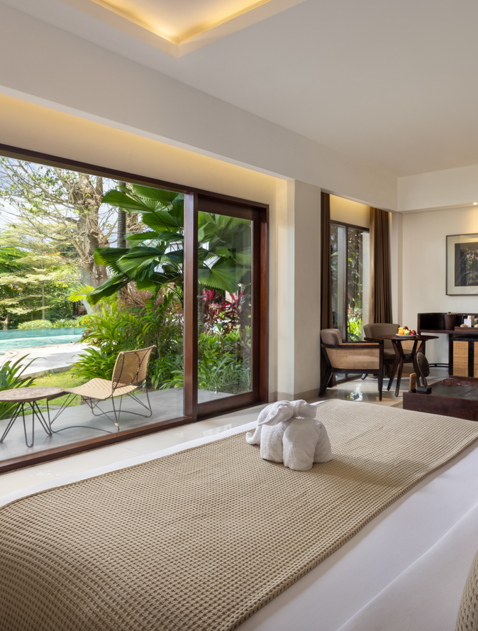 A ground-floor sanctuary that blends contemporary calm with artisanal warmth, elevated by the indulgence of direct pool access